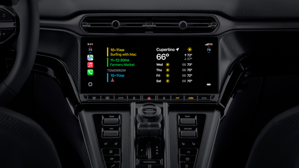 装备 CarPlay Ultra 的车辆还支撑经过屏幕操控或 Siri 语音指令来操作车辆功用,如收音机和空调,以及车辆特定功用,例如驾驭形式。苹果正在与轿车制造商合作伙伴共同开发与轿车品牌相匹配的主题界面。