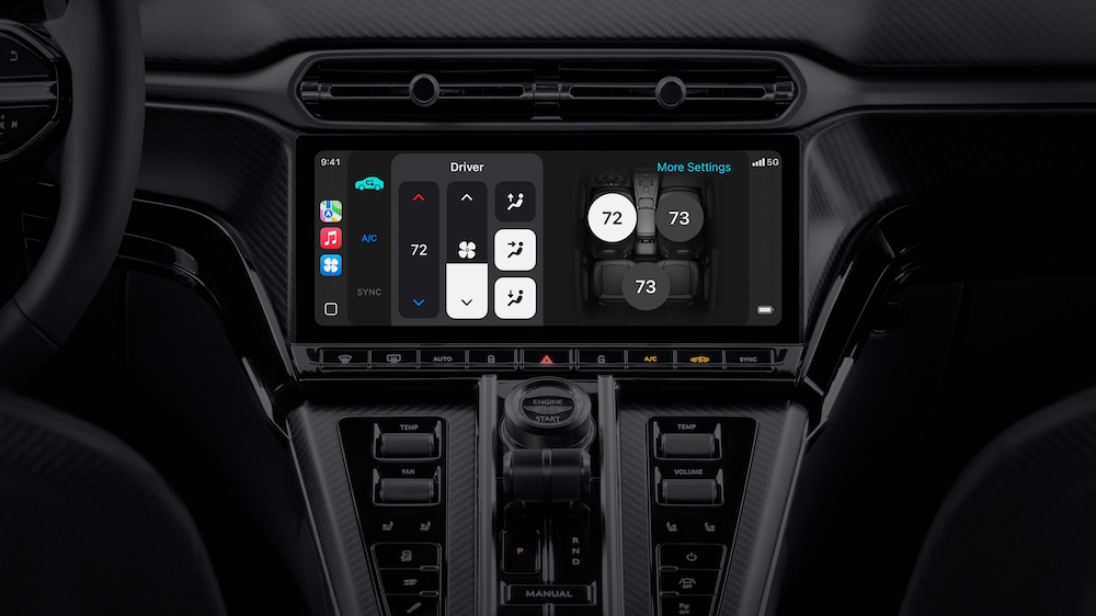 据苹果介绍,CarPlay Ultra 经过将车辆操控功用与 CarPlay 体会深度整合,完成了对车辆外表盘和外表的显现接收,包含空调、驾驭辅佐体系等的开关操控,以及更高档的媒体操控功用。该体系不只服务于车辆的主信息文娱显现屏,而是车内的一切屏幕,例如数字外表盘中的速度表、转速表、燃油表等。此外,CarPlay Ultra 的媒体和导航使用也可以无缝集成到外表盘中。